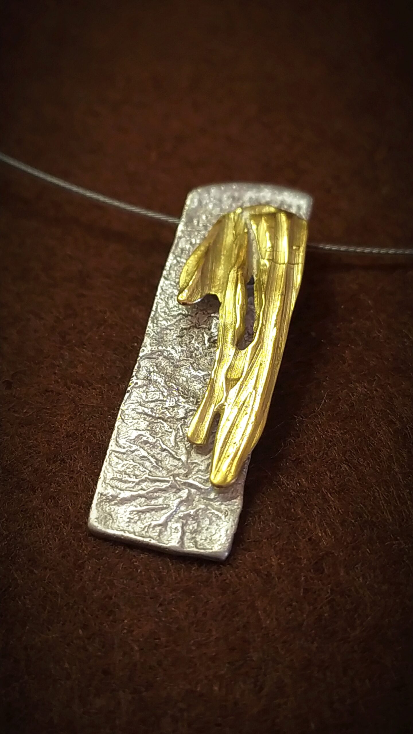 Penjoll Escorça – Bocí d’escorça de llautó petit i terra humida de plata